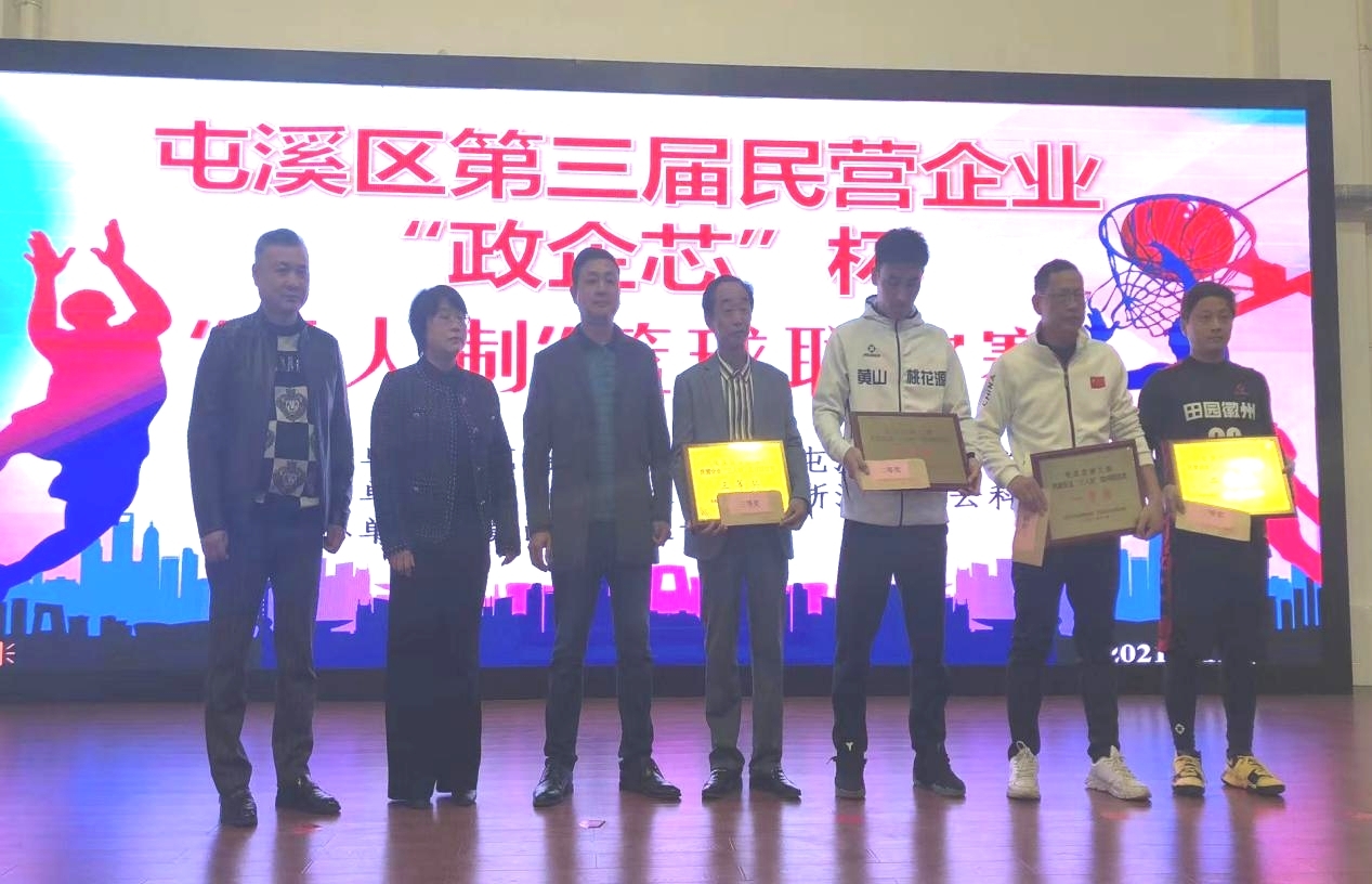 為加強(qiáng)屯溪區(qū)各民營(yíng)企業(yè)之間的聯(lián)系、交流,積極響應(yīng)主辦單位屯溪區(qū)委統(tǒng)戰(zhàn)部和屯溪區(qū)工商聯(lián)的要求,2021年11月13日,集團(tuán)公司組織新洲籃球隊(duì)隊(duì)員姚駿杰、胡志勇、馮曙朝、李洋和汪程(外援)參加了屯溪區(qū)第三屆民營(yíng)企業(yè)“政企芯”杯“三人制”籃球聯(lián)誼賽,經(jīng)過(guò)耗時(shí)一天7場(chǎng)循環(huán)制比賽,在新洲籃球運(yùn)動(dòng)員的勇于拼搏,積極配合和不懈努力下,獲得了籃球聯(lián)誼賽三等獎(jiǎng)。