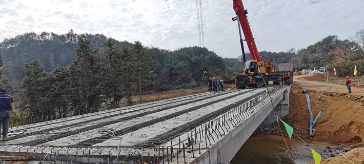 鮑家橋梁板吊裝工作順利完成,標志著該橋正式進入了橋面施工階段,為該工程后續(xù)楊峰嶺橋的吊裝打下堅實基礎(chǔ)。梁板吊裝完工后,鮑家橋?qū)⑦M行橋面鋪裝以及橋梁護欄等附屬設(shè)施的施工。
