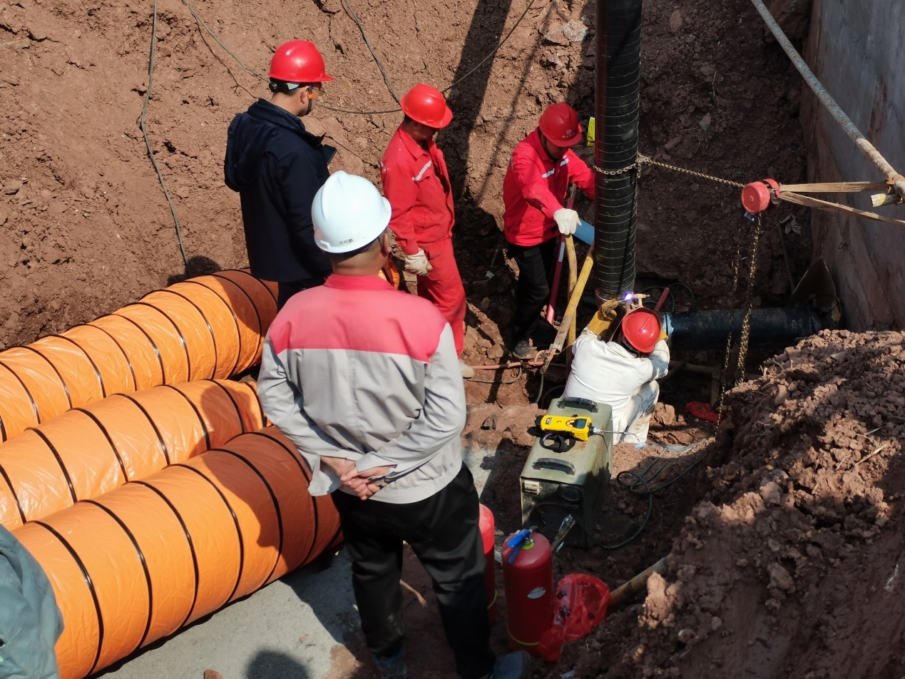 2022年3月3日,施工現(xiàn)場已嚴(yán)格按照動火連頭施工方案落實(shí)了人員組織、施工警戒區(qū)域、消防安全保證措施等,并在取得特殊動火工作票后,于當(dāng)天上午9點(diǎn)左右開始施工,施工單位河南萬佳建設(shè)工程有限公司、安徽省皖能港華天然氣有限公司、監(jiān)理單位北京華業(yè)恒基工程項(xiàng)目管理有限公司、建設(shè)單位黃山綠洲新型建筑材料有限公司、黃山新洲建設(shè)集團(tuán)有限公司等相關(guān)單位負(fù)責(zé)人及領(lǐng)導(dǎo)帶隊(duì)堅(jiān)守一線、嚴(yán)密監(jiān)控動火現(xiàn)場、合理調(diào)配各項(xiàng)資源。經(jīng)過全體人員近5個(gè)多小時(shí)的緊張工作,動火連頭作業(yè)順利結(jié)束。這也推動了黃山綠洲新型建筑材料有限公司順利投產(chǎn)的進(jìn)度。