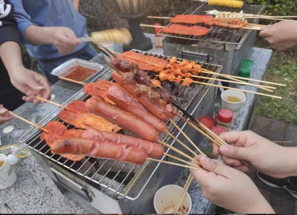 傍晚時刻,房車營地前煙火味十足,烤肉的味道香飄十里,大家分工合作,一起動手,體驗了“自己動手豐衣足食”的樂趣。面對豐富的食物,大家烤得熱火朝天,吃得不亦樂乎!歡聲笑語連成片,其樂融融。