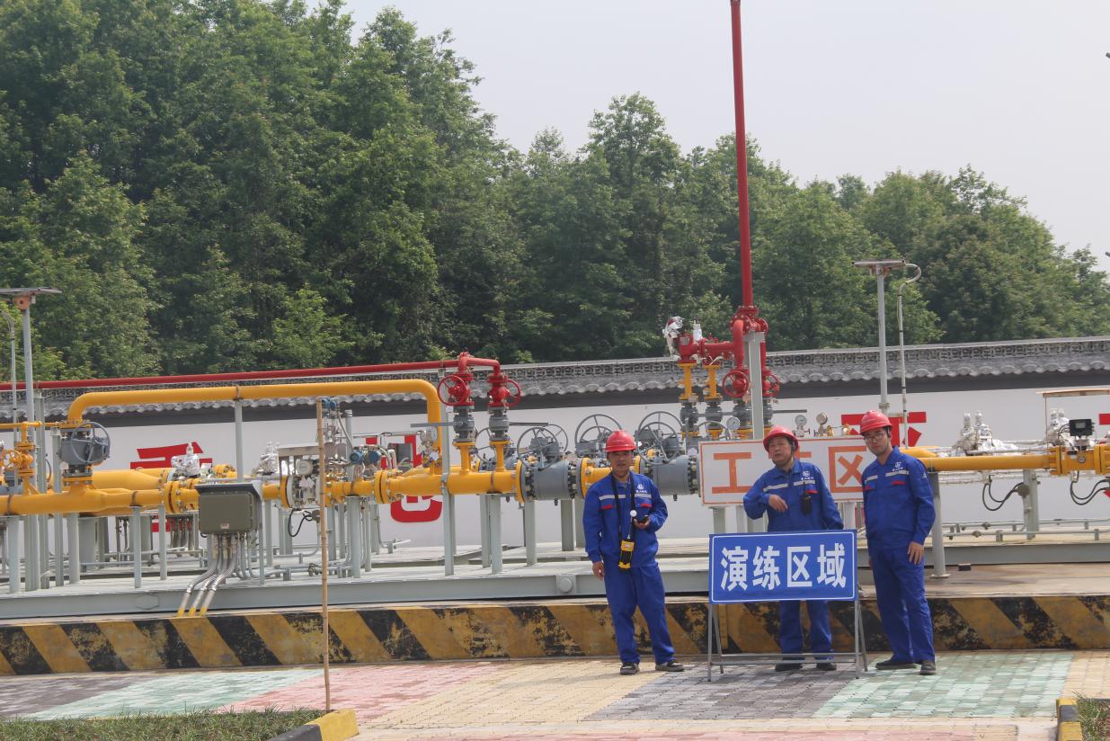 會后眾人前往綠洲直供站工藝區(qū),結(jié)合本次培訓內(nèi)容開展綠洲直供站“站內(nèi)工藝設備設施天然氣泄漏”應急處置演練。
