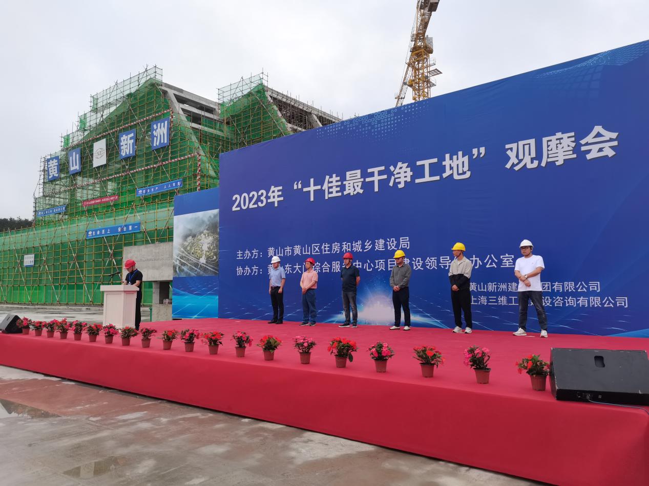 為加快打造“全國(guó)最干凈城市”,助推全國(guó)文明典范城市創(chuàng)建,加強(qiáng)建筑工地安全管理工作,全面提升建筑工地標(biāo)準(zhǔn)化施工管理水平。2023年5月31日上午九點(diǎn),由黃山區(qū)住建局組織開展的2023年黃山區(qū)“最干凈工地”觀摩會(huì)走進(jìn)黃山新洲建設(shè)集團(tuán)承建的黃山東大門綜合服務(wù)中心項(xiàng)目。區(qū)住建局、黃山風(fēng)景區(qū)管委會(huì)、集團(tuán)公司總經(jīng)理、全區(qū)建筑施工、監(jiān)理企業(yè),建筑業(yè)協(xié)會(huì)以及在建項(xiàng)目等相關(guān)負(fù)責(zé)人近百人參加觀摩。