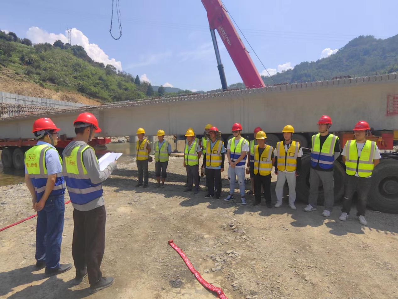 為確保梁板架設(shè)工作順利進(jìn)行,項(xiàng)目部高度重視,精心組織橋梁下部及預(yù)制梁板驗(yàn)收、專項(xiàng)方案審批,提前安排隊(duì)伍進(jìn)場(chǎng),熟悉施工環(huán)境和技術(shù)方案,對(duì)梁板架設(shè)人員進(jìn)行安全教育培訓(xùn)和技術(shù)交底,并進(jìn)行現(xiàn)場(chǎng)監(jiān)督,嚴(yán)格把控梁板架設(shè)的過(guò)程及安全性,全方位保障了架梁工作的順利進(jìn)行。