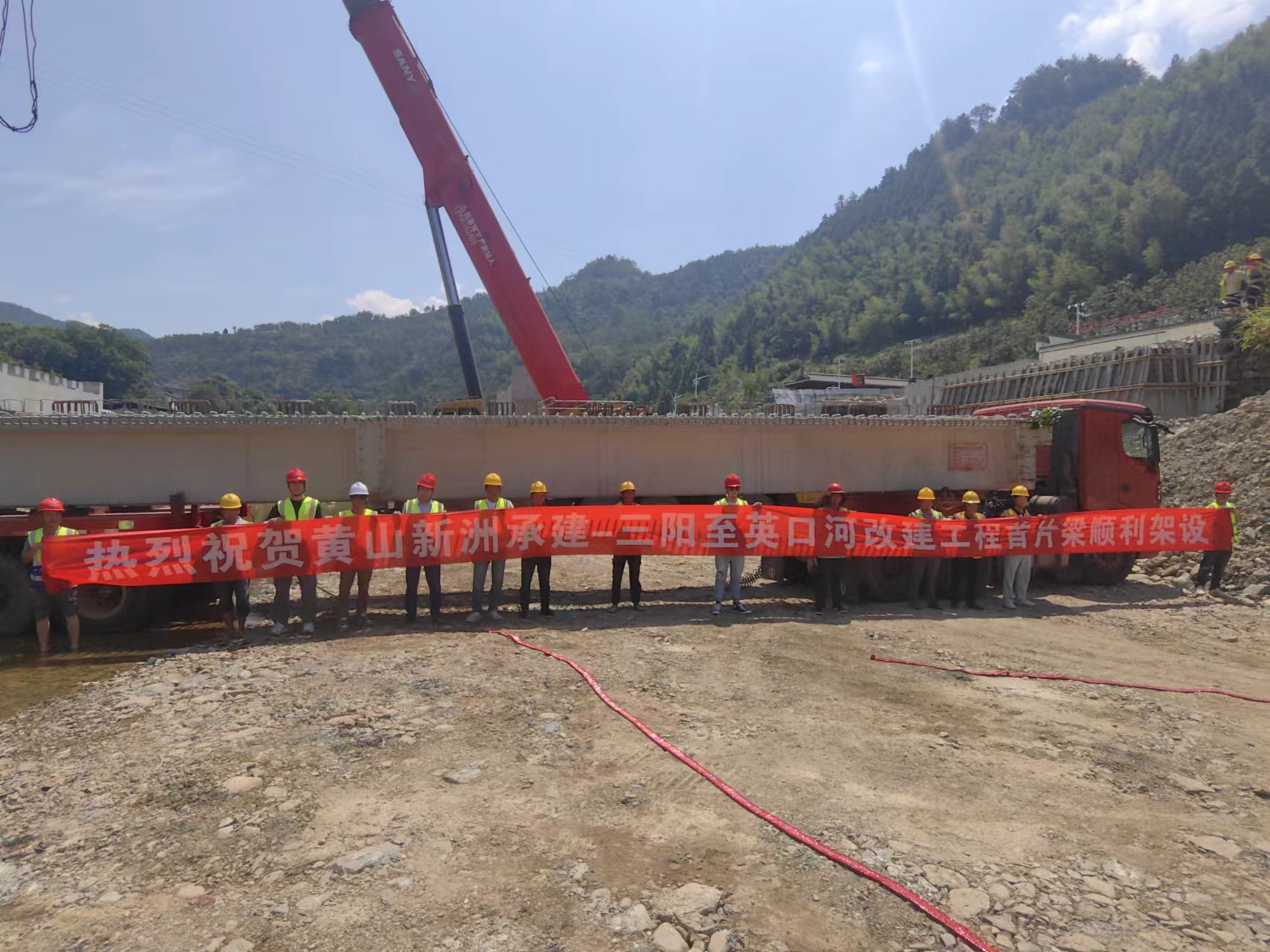 連日的持續(xù)高溫?fù)醪蛔≈啡说牟椒ィ?月5日上午,炎炎烈日之下,隨著煙花爆竹的一聲聲爆炸,我公司承建的歙縣三陽(yáng)-英坑河口農(nóng)村道路改建工程,K1+148線外橋第一片梁板架設(shè)成功。