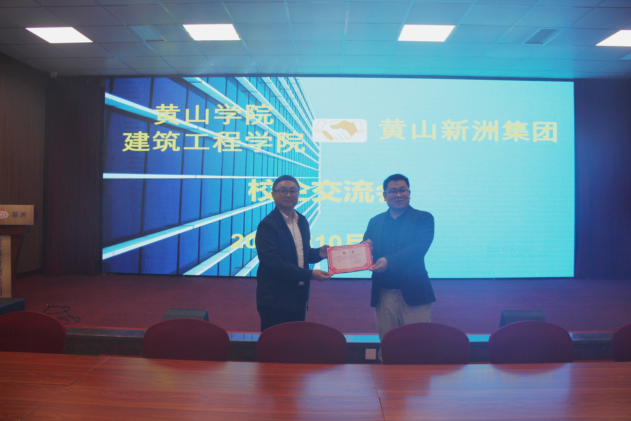 參會(huì)人員共同觀看了新洲集團(tuán)企業(yè)宣傳片后,校企雙方代表分別就如何培養(yǎng)一批BIM應(yīng)用能力實(shí)用性人才、利用大數(shù)據(jù)提升企業(yè)中標(biāo)率、企業(yè)專(zhuān)利申報(bào)、產(chǎn)學(xué)研結(jié)合等方面深入開(kāi)展溝通交流。會(huì)議間隙,黃山學(xué)院建筑工程學(xué)院正式為新洲集團(tuán)總經(jīng)理李利成同志頒發(fā)黃山學(xué)院大學(xué)生創(chuàng)新創(chuàng)業(yè)導(dǎo)師的聘書(shū),這也標(biāo)志著我司與黃山學(xué)院在校企合作方面拉開(kāi)了新的篇章。